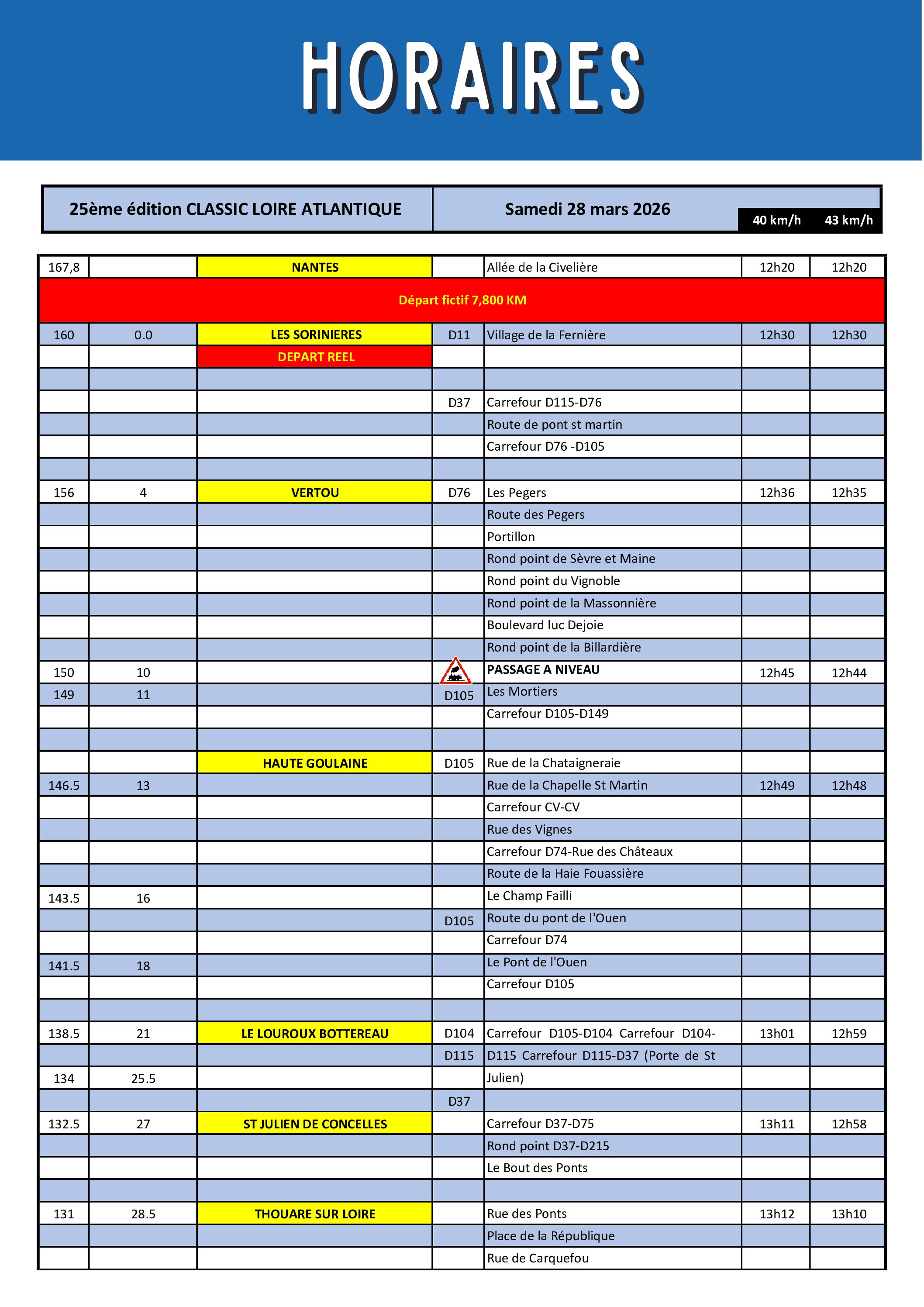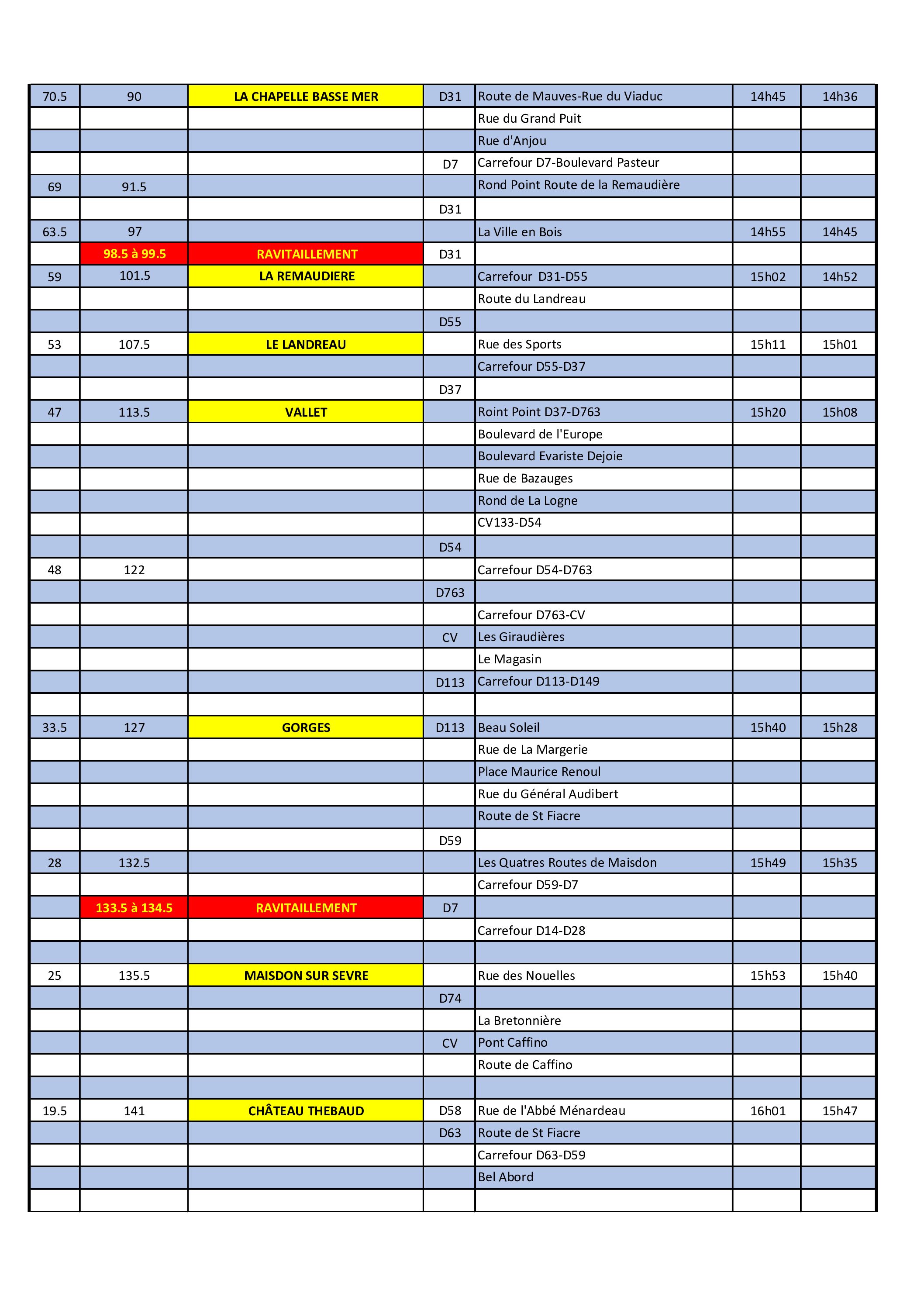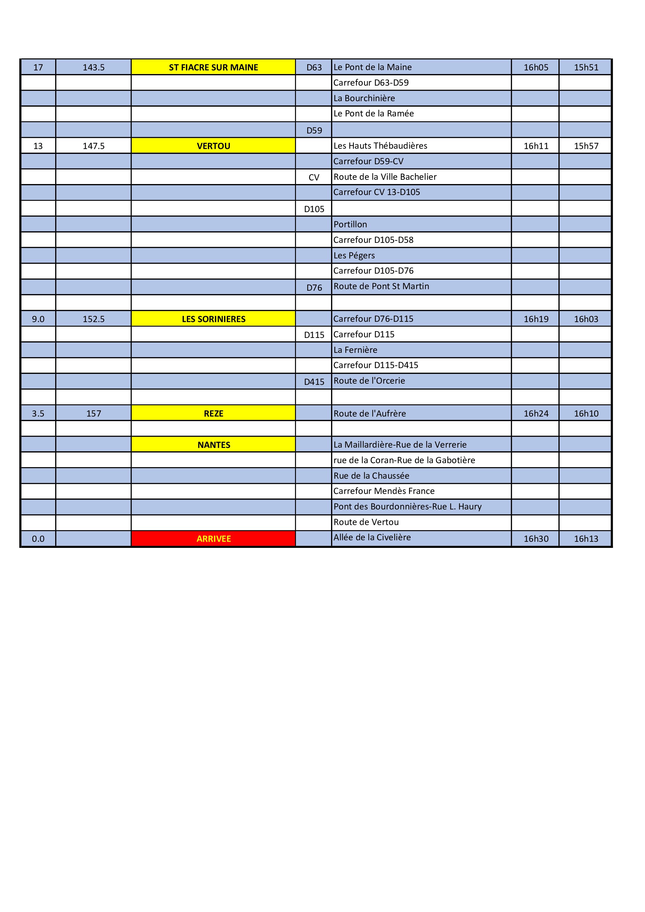 Arrivée estimée (40km/h) : 16h30 / (43km/h) : 16h15